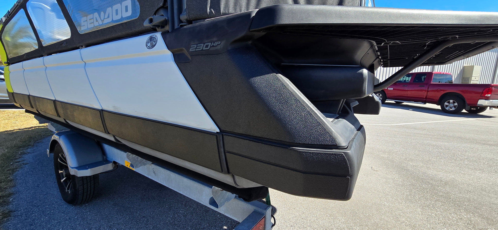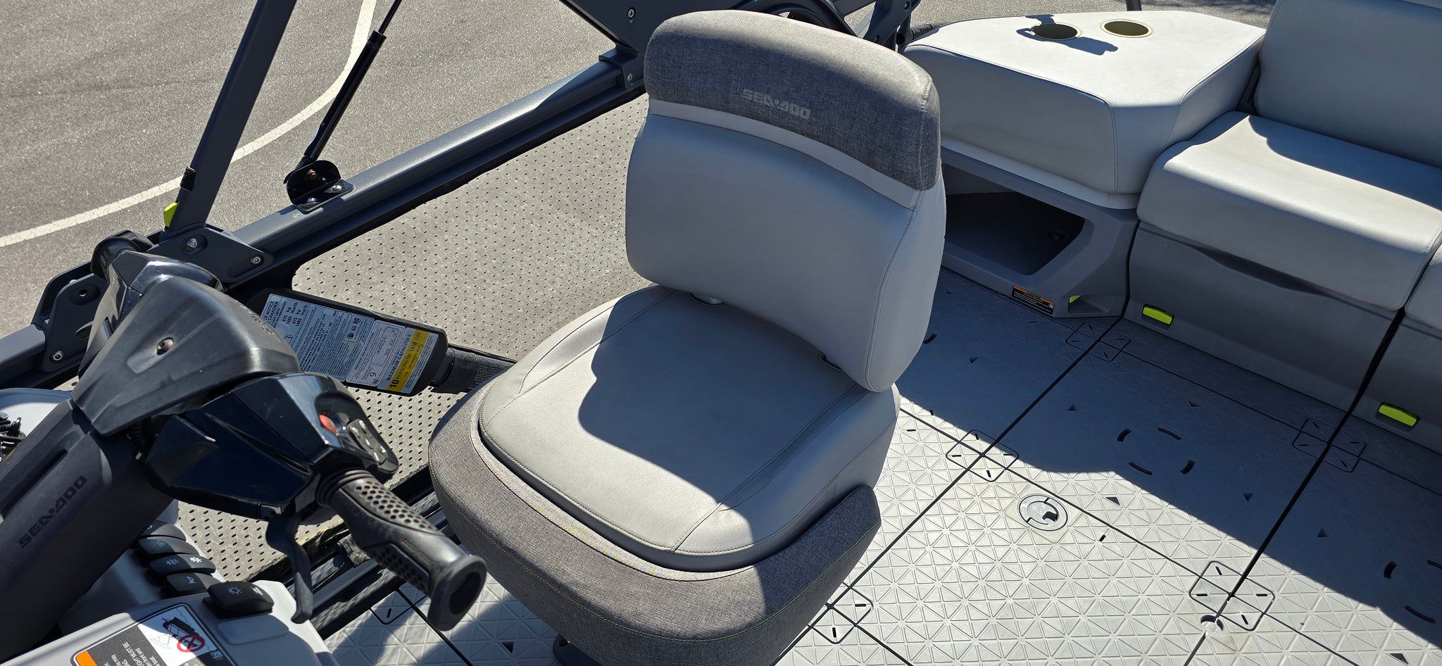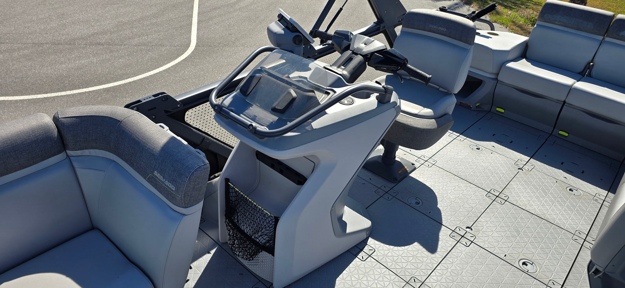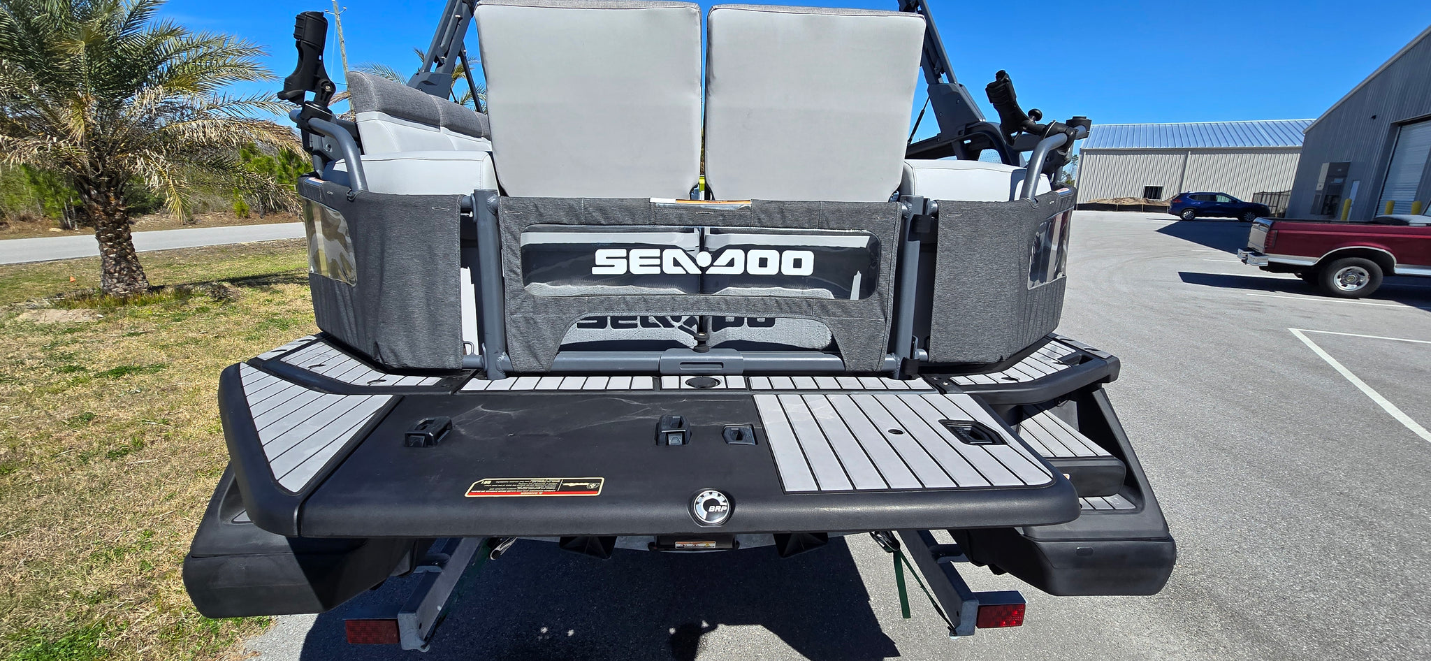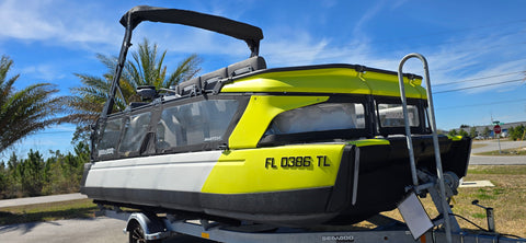 Includes JBP Reef Wrap, Pontoon Bumpers, Rear Gate Kit (Starboard Side), 3D Numbers, AirBim Bimini Struts, Marine Mat Front & Rear Deck Kit, Sea-Doo Cooler With Linq Mount, Sea-Doo Seat Back Stroage Bag
