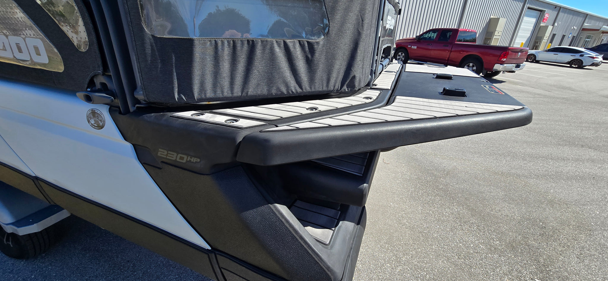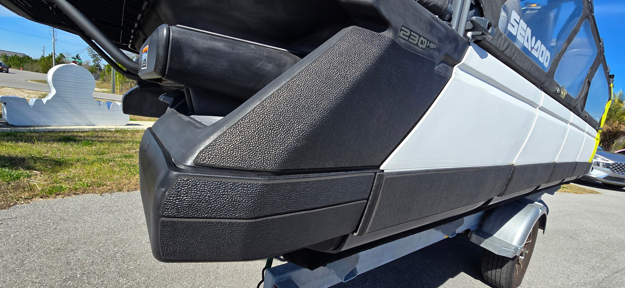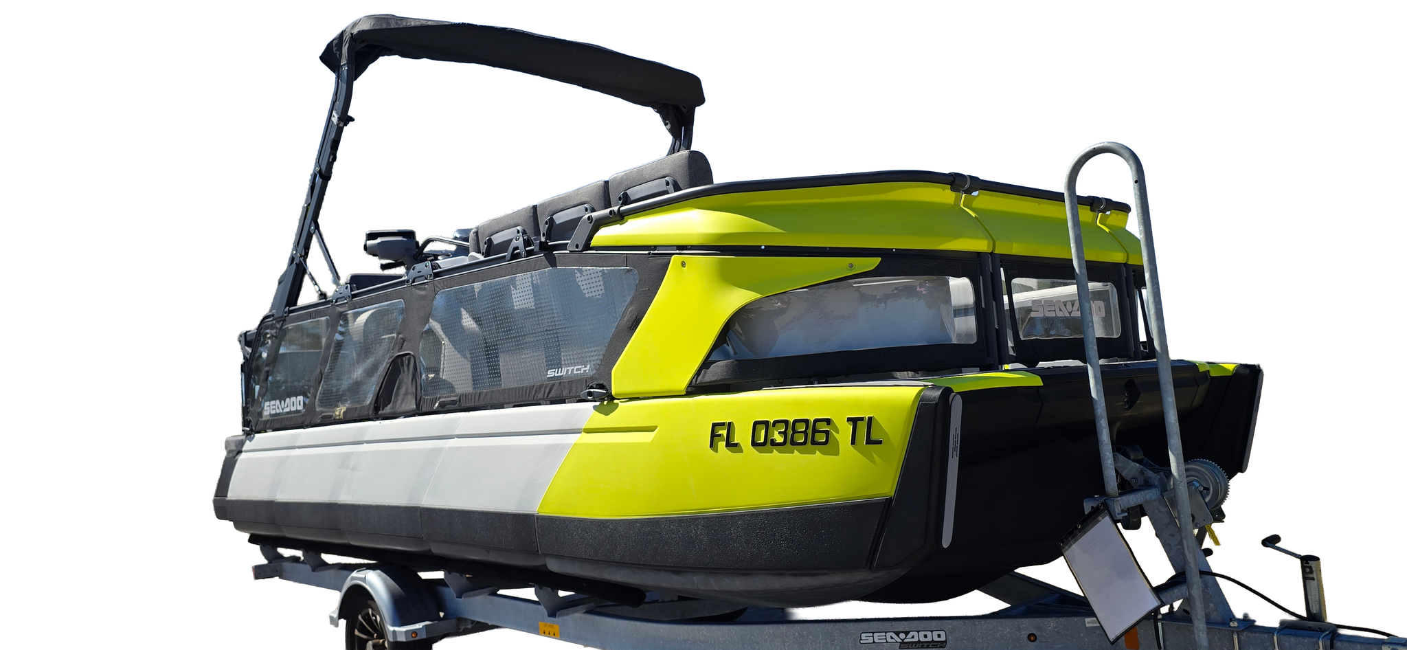 Includes JBP Reef Wrap, Pontoon Bumpers, Rear Gate Kit (Starboard Side), 3D Numbers, AirBim Bimini Struts, Marine Mat Front & Rear Deck Kit, Sea-Doo Cooler With Linq Mount, Sea-Doo Seat Back Stroage Bag