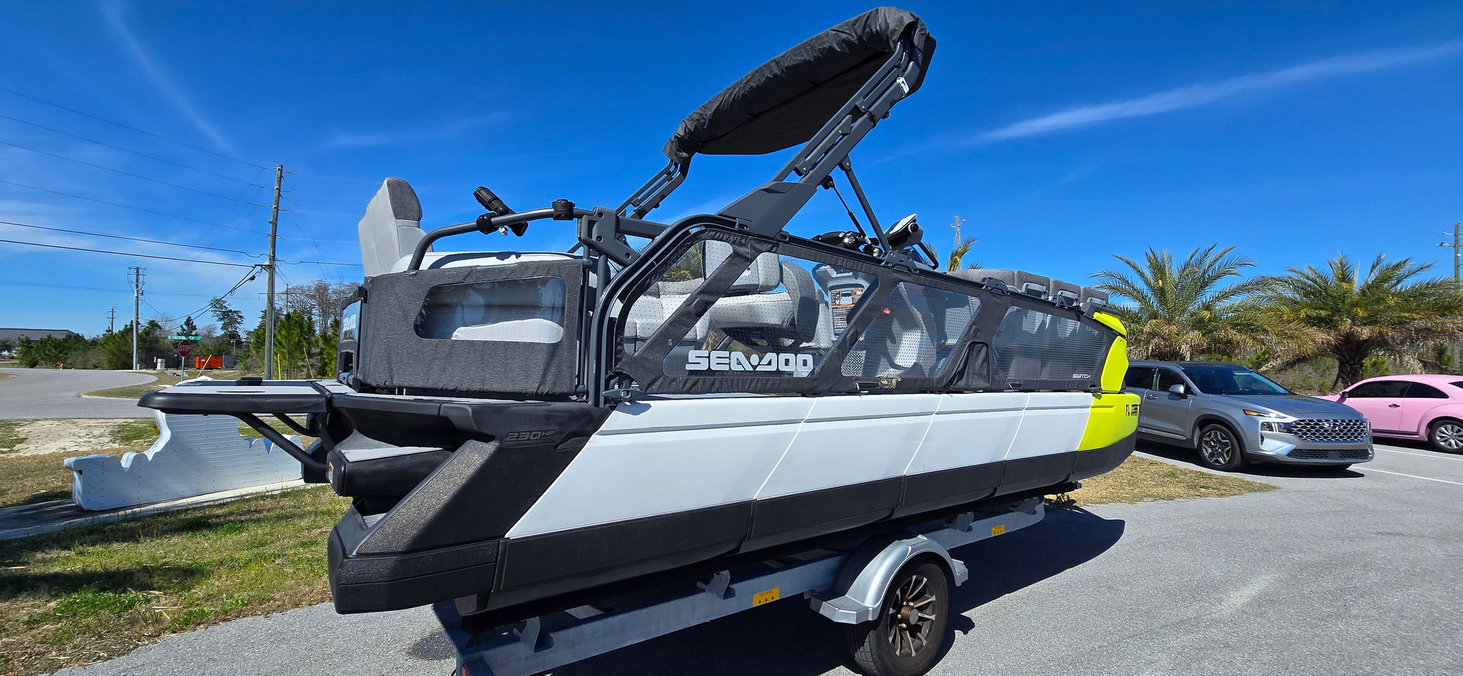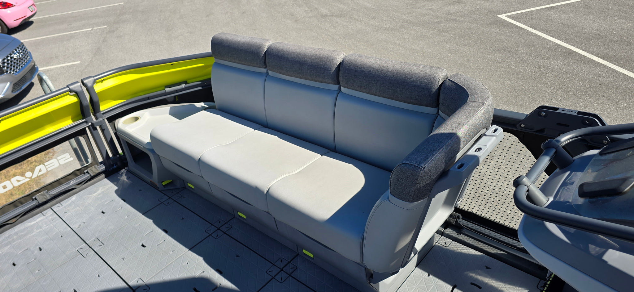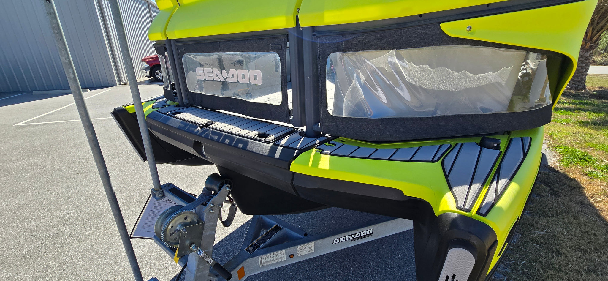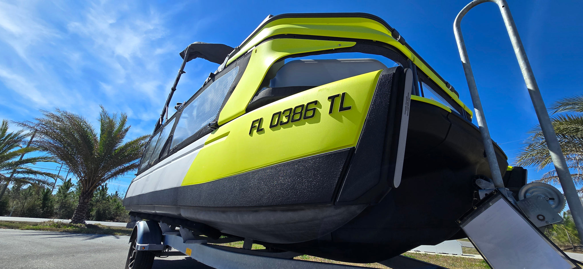 Includes JBP Reef Wrap, Pontoon Bumpers, Rear Gate Kit (Starboard Side), 3D Numbers, AirBim Bimini Struts, Marine Mat Front & Rear Deck Kit, Sea-Doo Cooler With Linq Mount, Sea-Doo Seat Back Stroage Bag